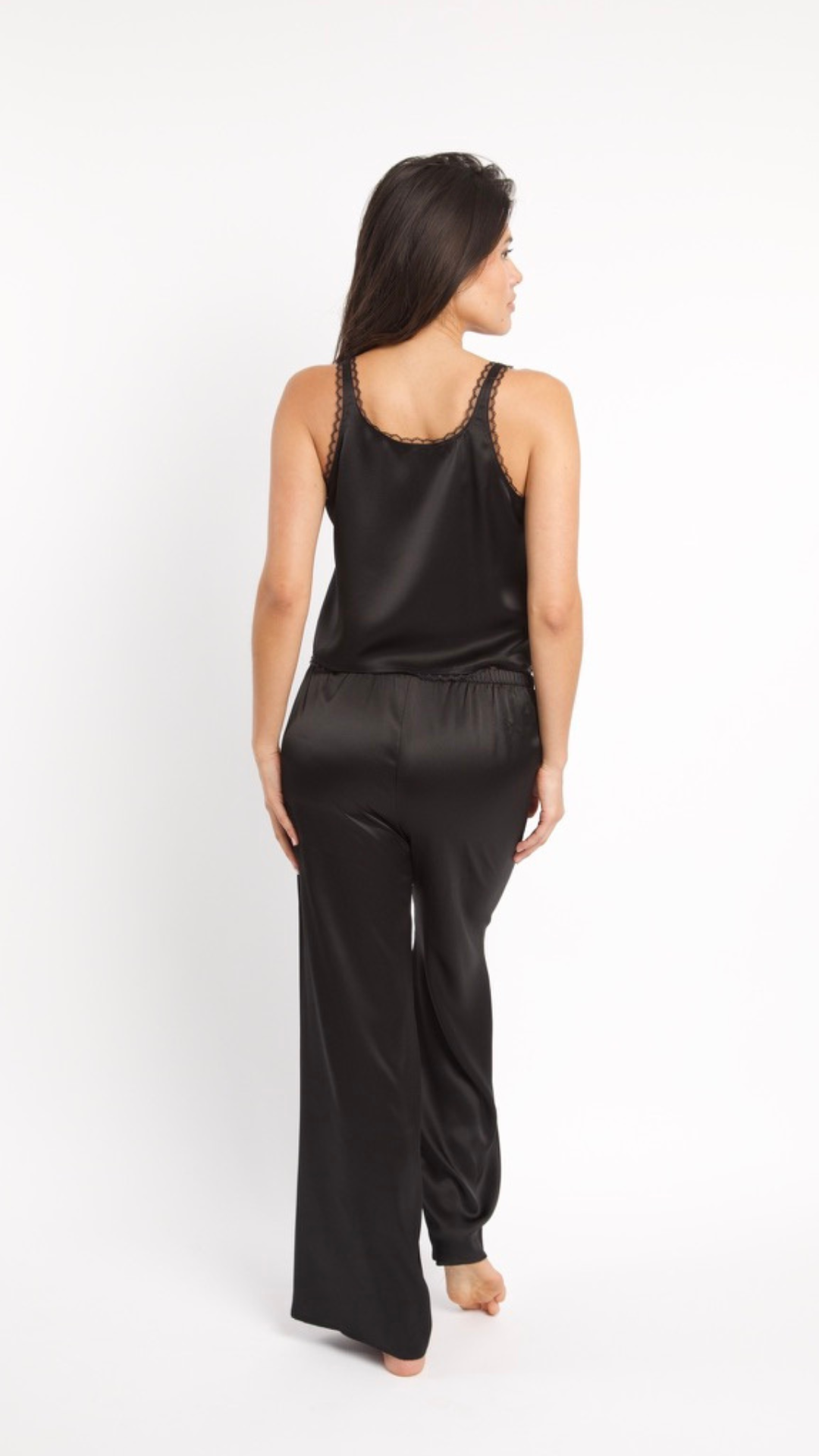 The Cavani Taormina Pant is the perfect pajama pant for a cozy night in. This pant features a relaxed, straight leg with a slight flare, an elastic waist. Made out of a dreamy silk material, the pants are complete with micro button detailing at the front. Make it a set with the Scaloni Taormina Camisole or the Vivi Taormina Tank.