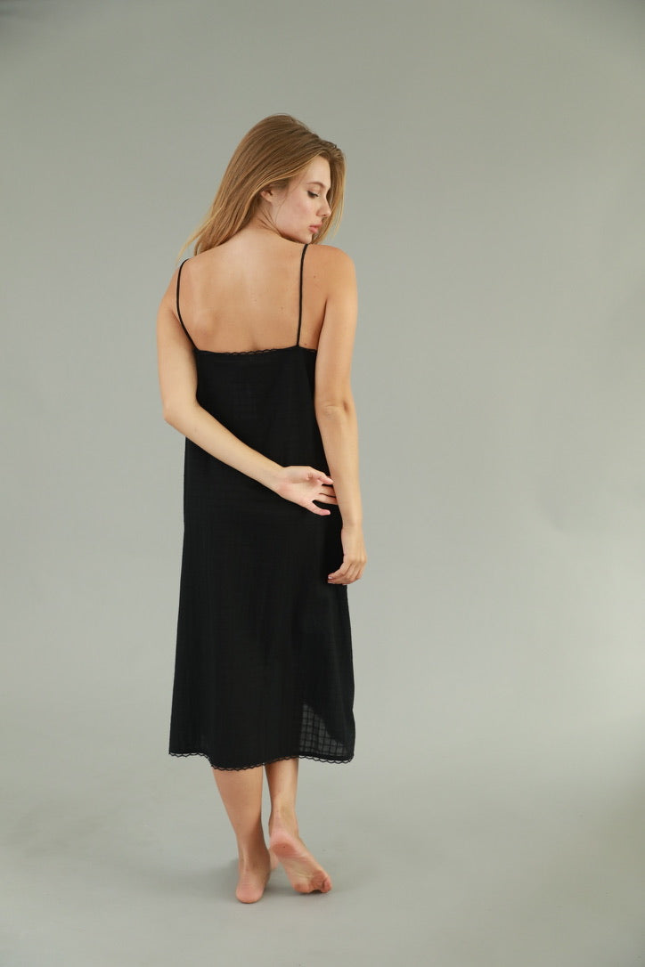 The Bleu Marseille Midi Dress is the perfect summer piece. This gown is great to dress up or lounge around the house in. Lightweight and breathable, the Bleu features a mid-length fit with spaghetti straps, lace details, and a four-button placket.