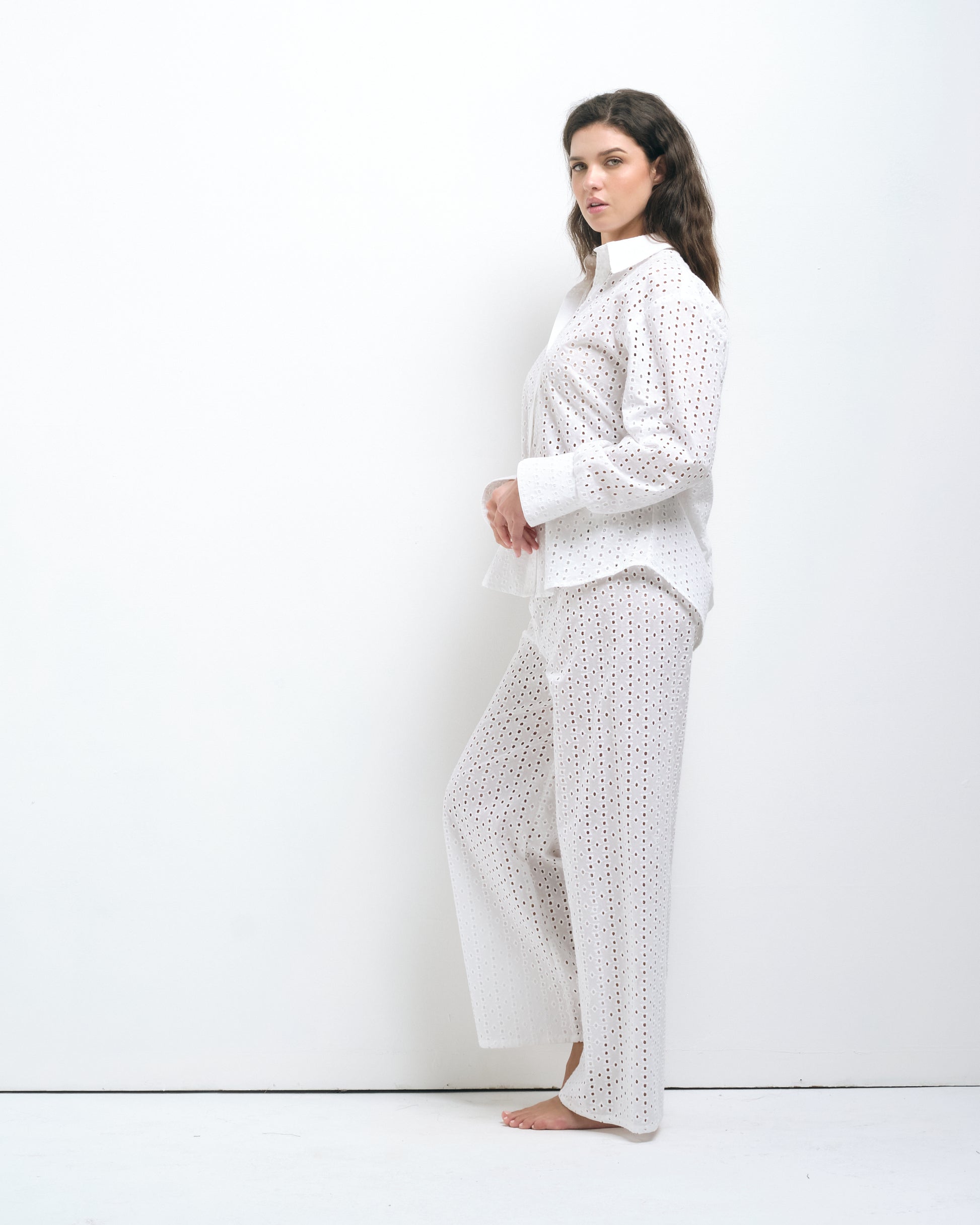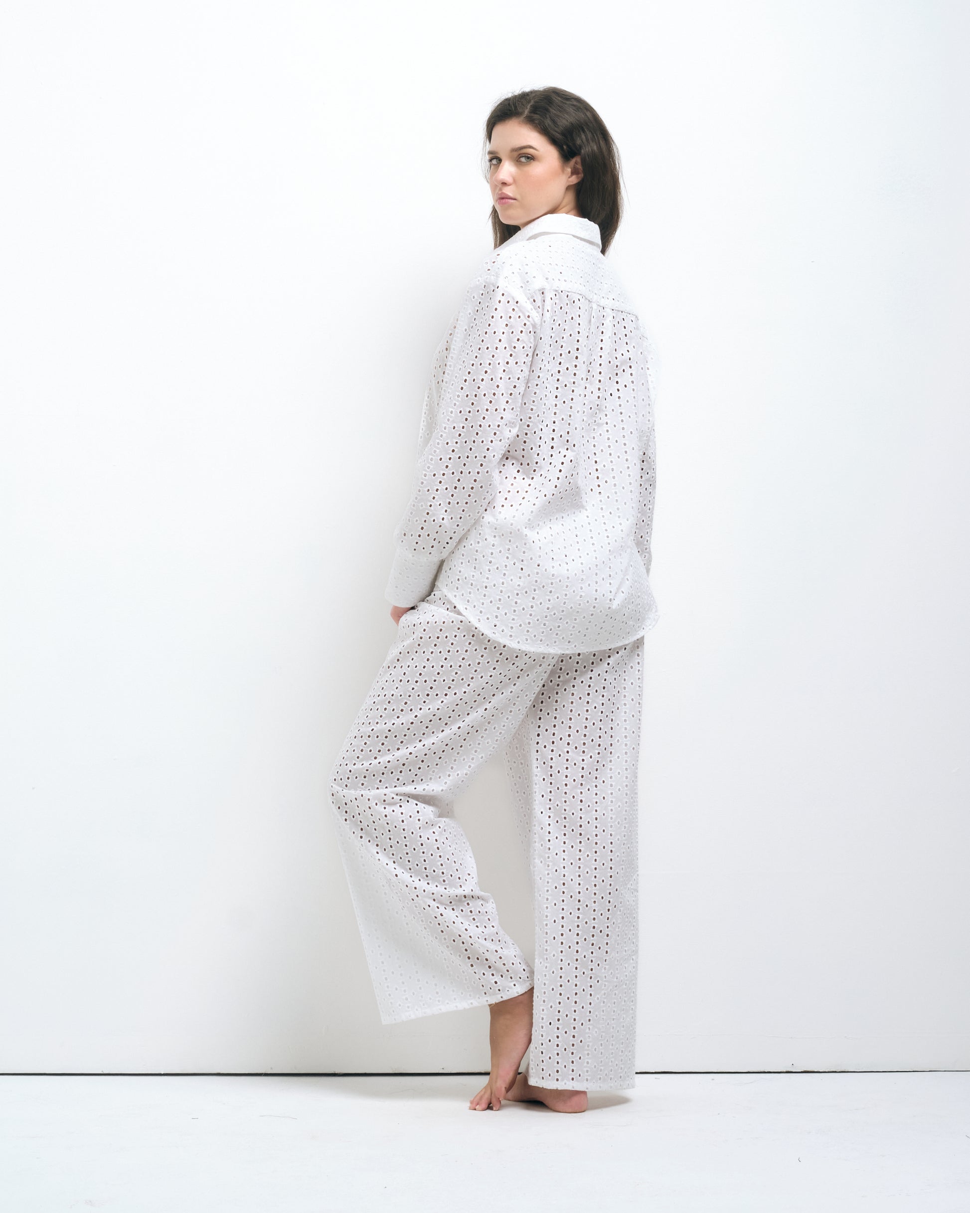 Material: Eyelet, 100% Cotton. Machine wash in cold water. Lay flat to dry.