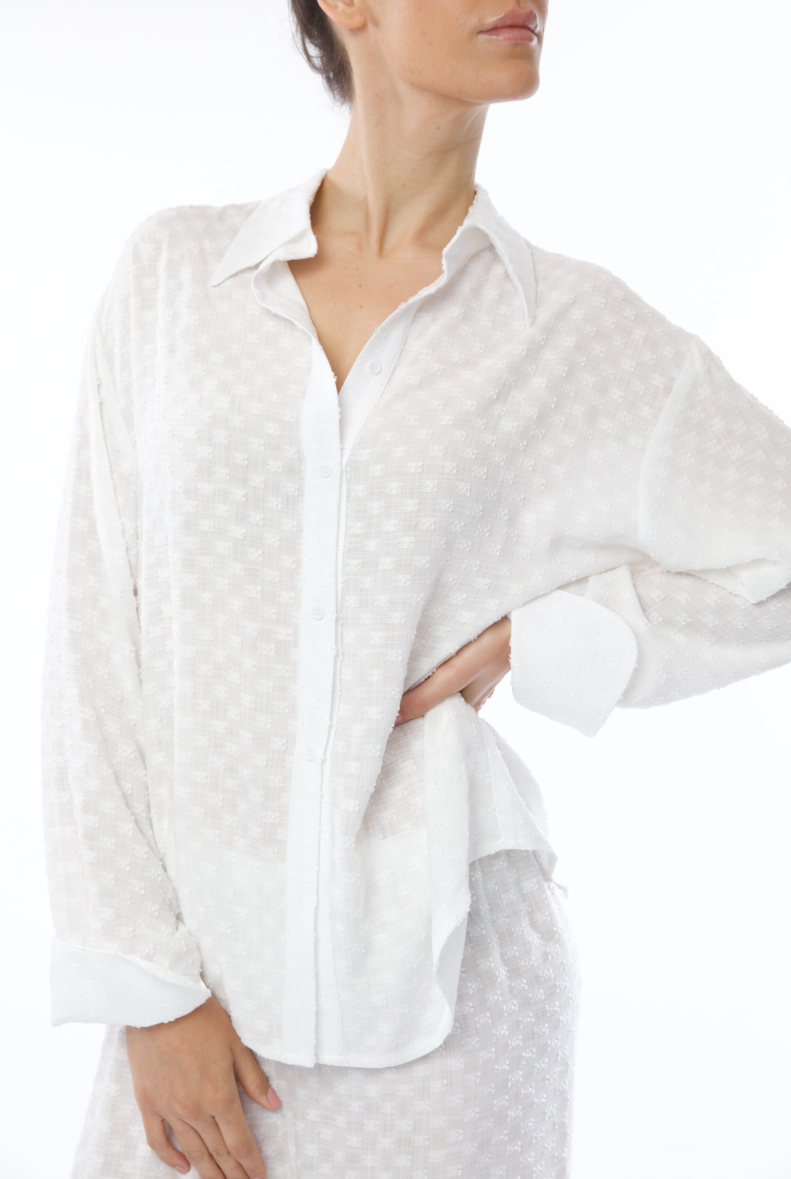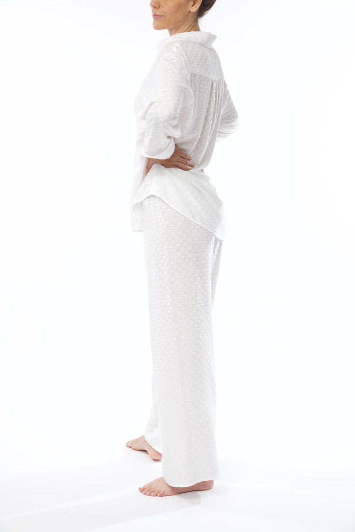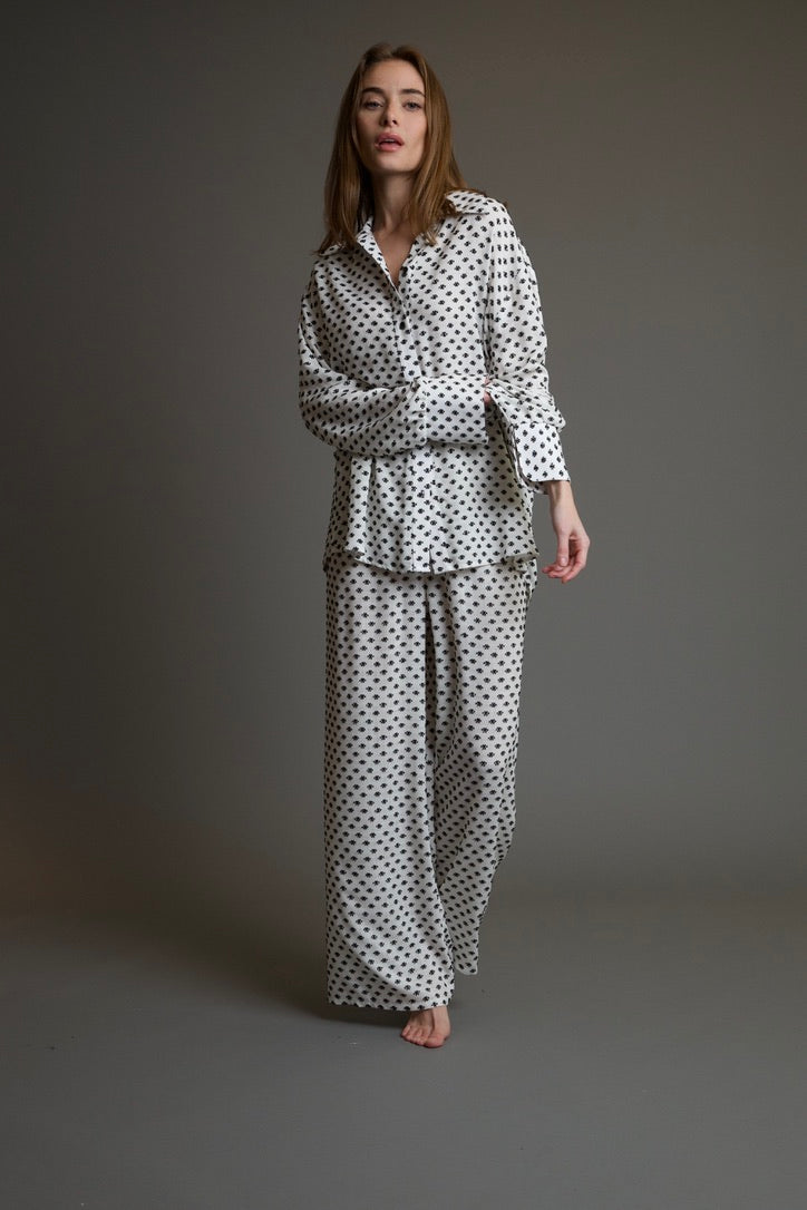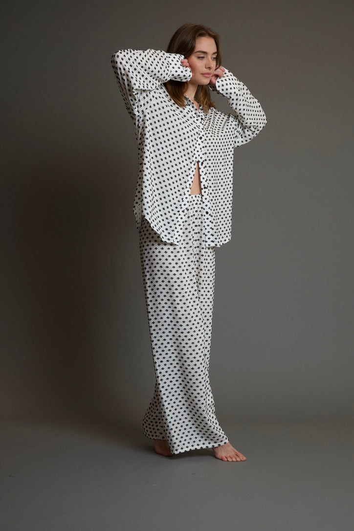 The Essen Le Marais Blouse is the perfect blouse to wear for any event. The Essen is our classic collared shirt with buttons down the front with two cuffs featuring styled slits around the wrists. The shirt tail hem and back pleat at the yoke adding a touch of sophistication to the blouse. Style at home with your favorite Andine bottoms or out on the street with your go-to Andine tank and a pair of jeans. Match it as a set in our Gigi Le Marais Boxer or the Cavani Le Marais Pant.