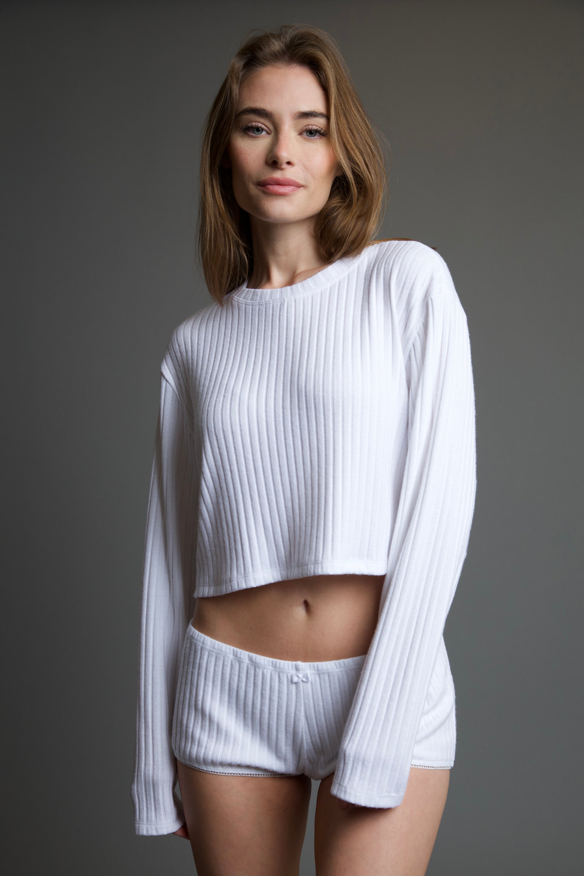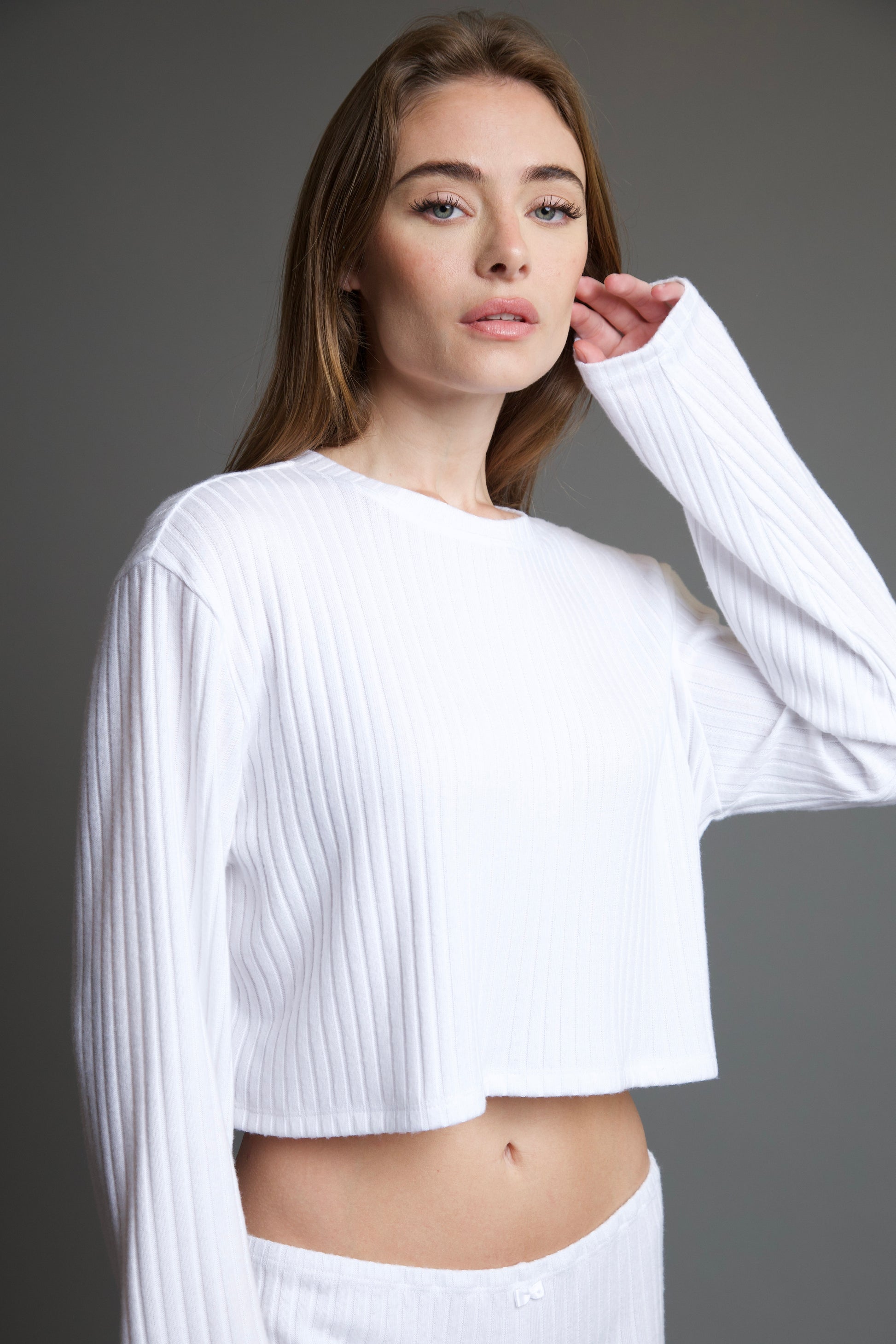 The Maeve Seville Long Sleeve Crop T-Shirt is the perfect addition to any wardrobe for that effortless and chic aesthetic. This tee features a classic crew neckline with extra long sleeves for added comfort. Style with your favorite Andine bottoms like the Antonela Seville Short or the Soleil Seville Pant for a cozy night in or style with jeans for a night out.
