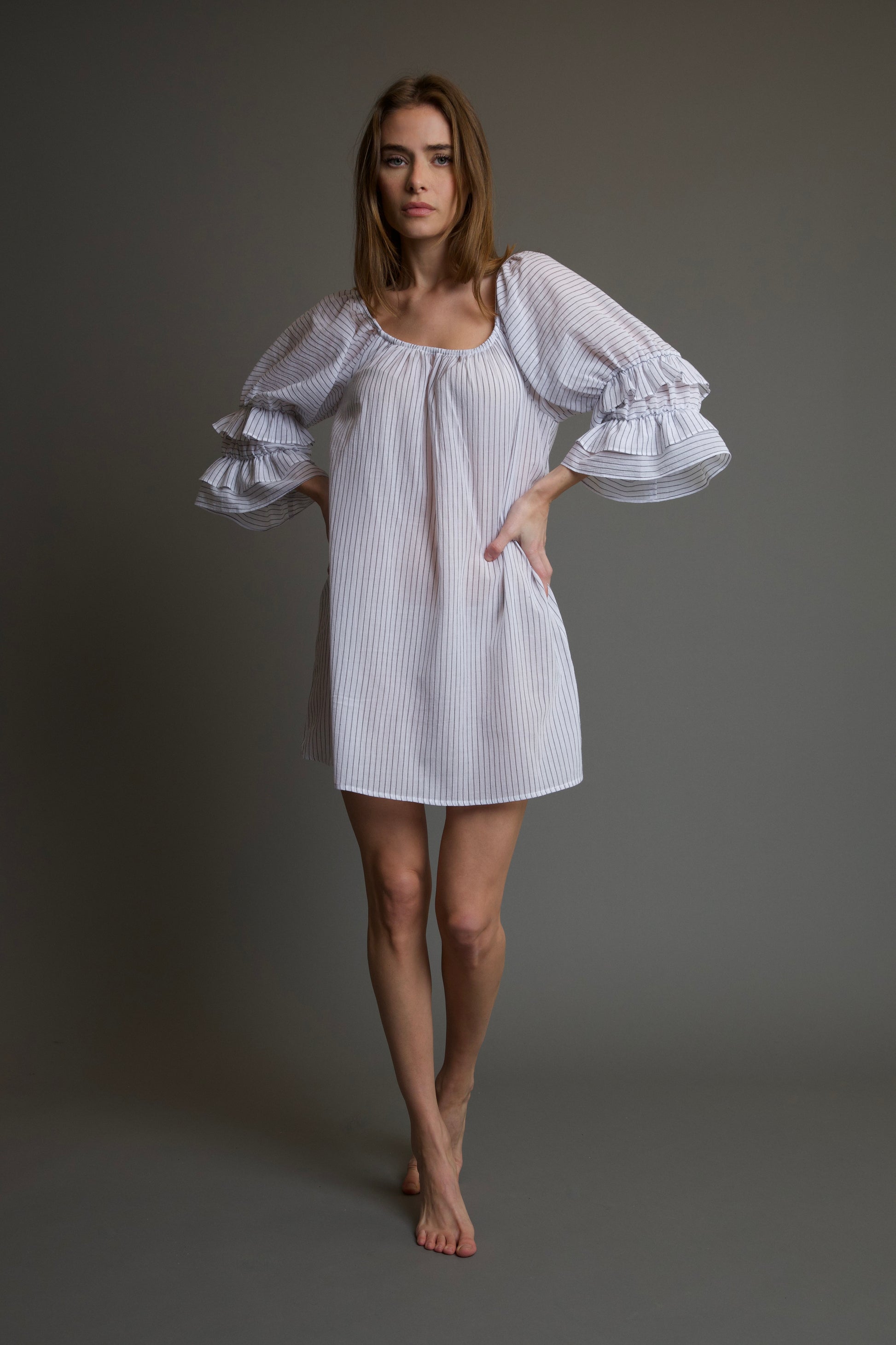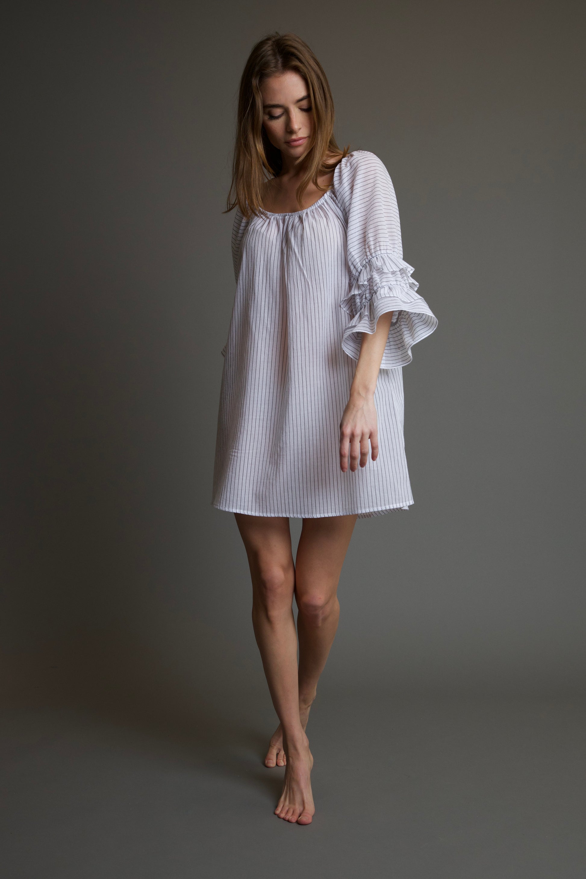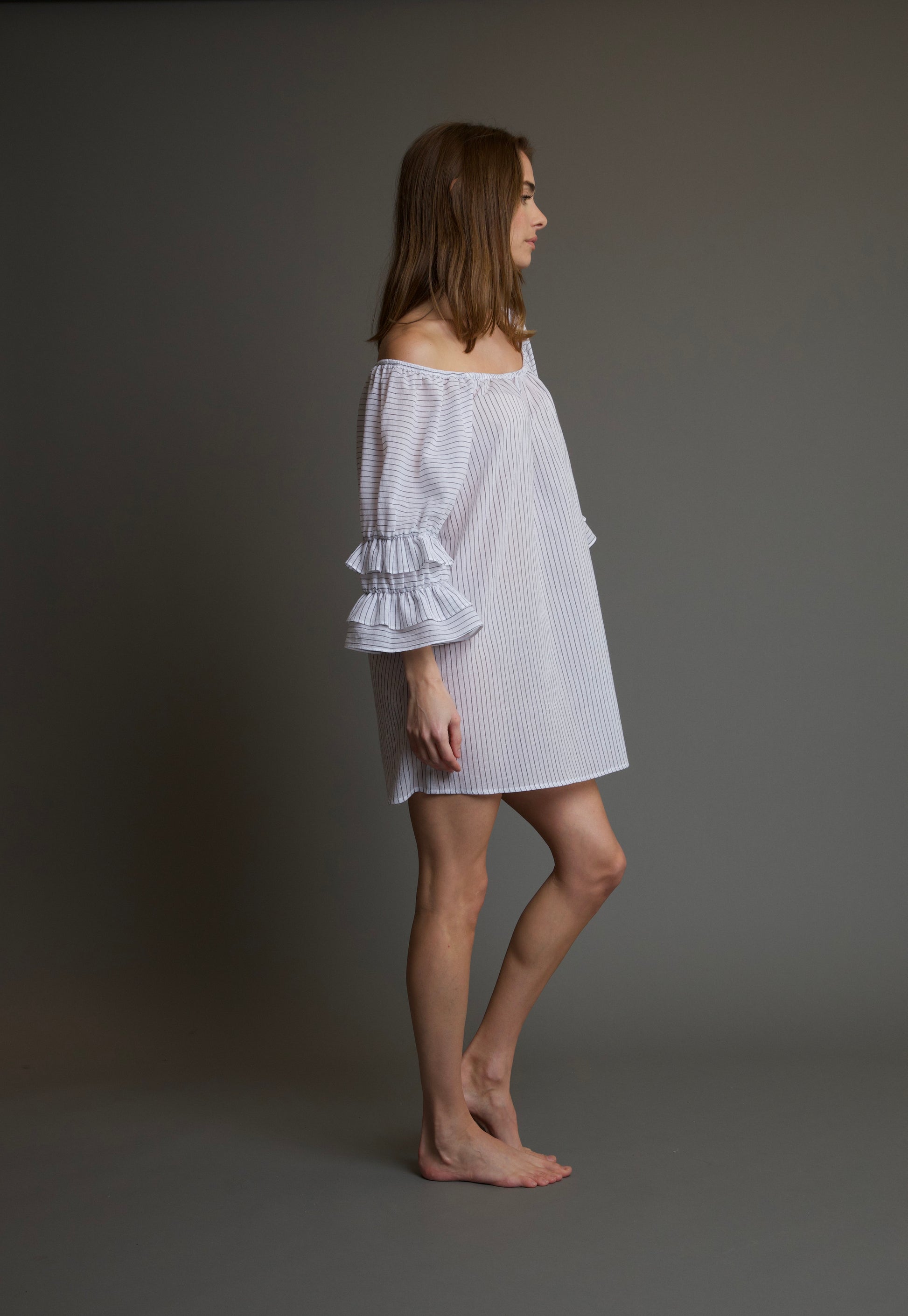 Material: Pinstripe, Woven. 100% Cotton. Cold water wash and lay flat to dry.