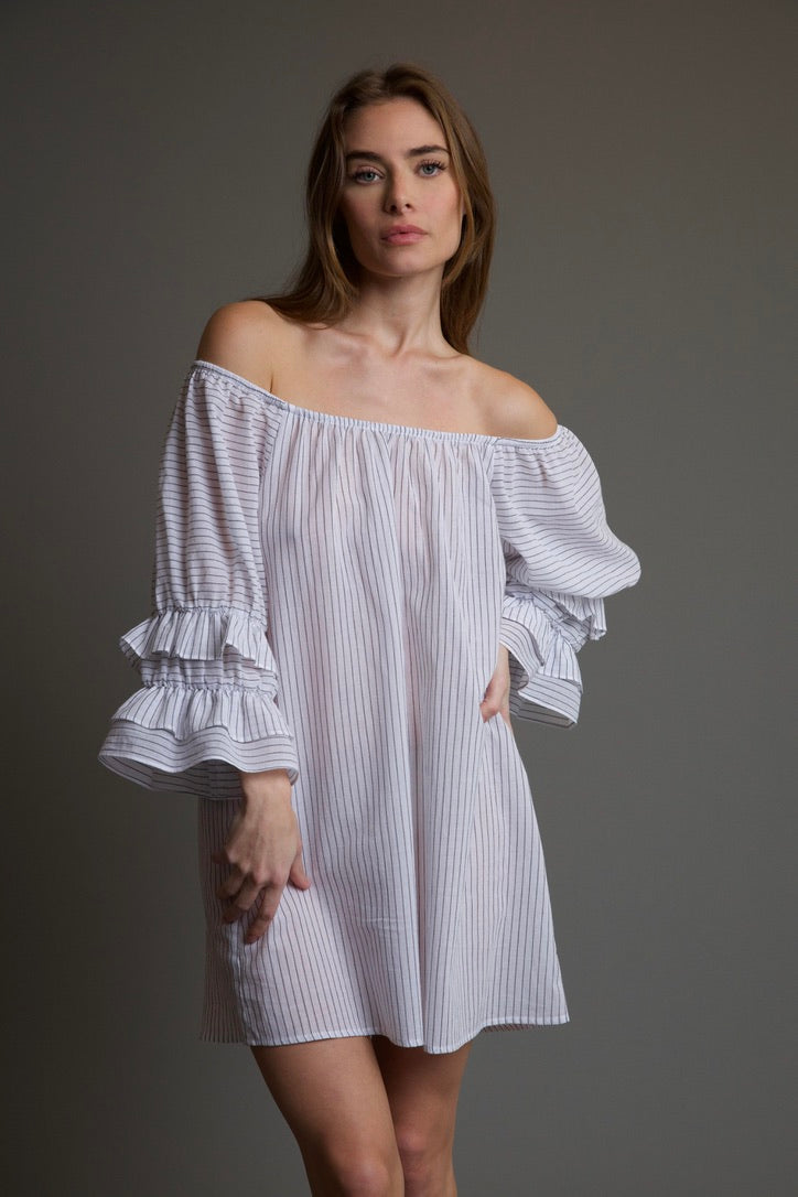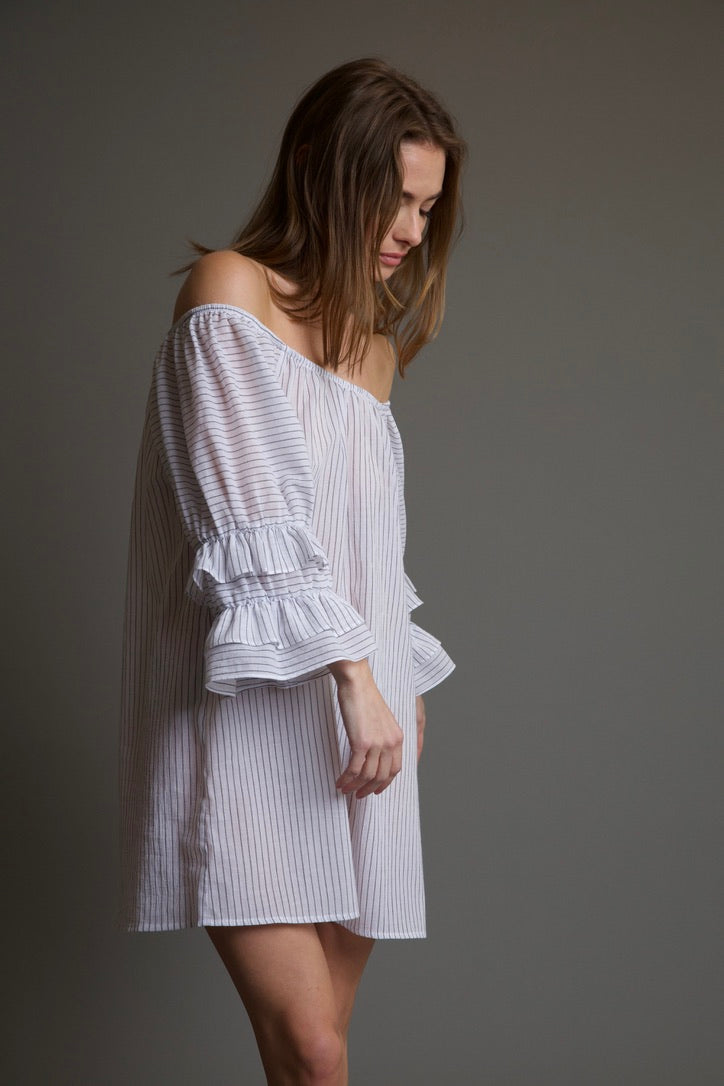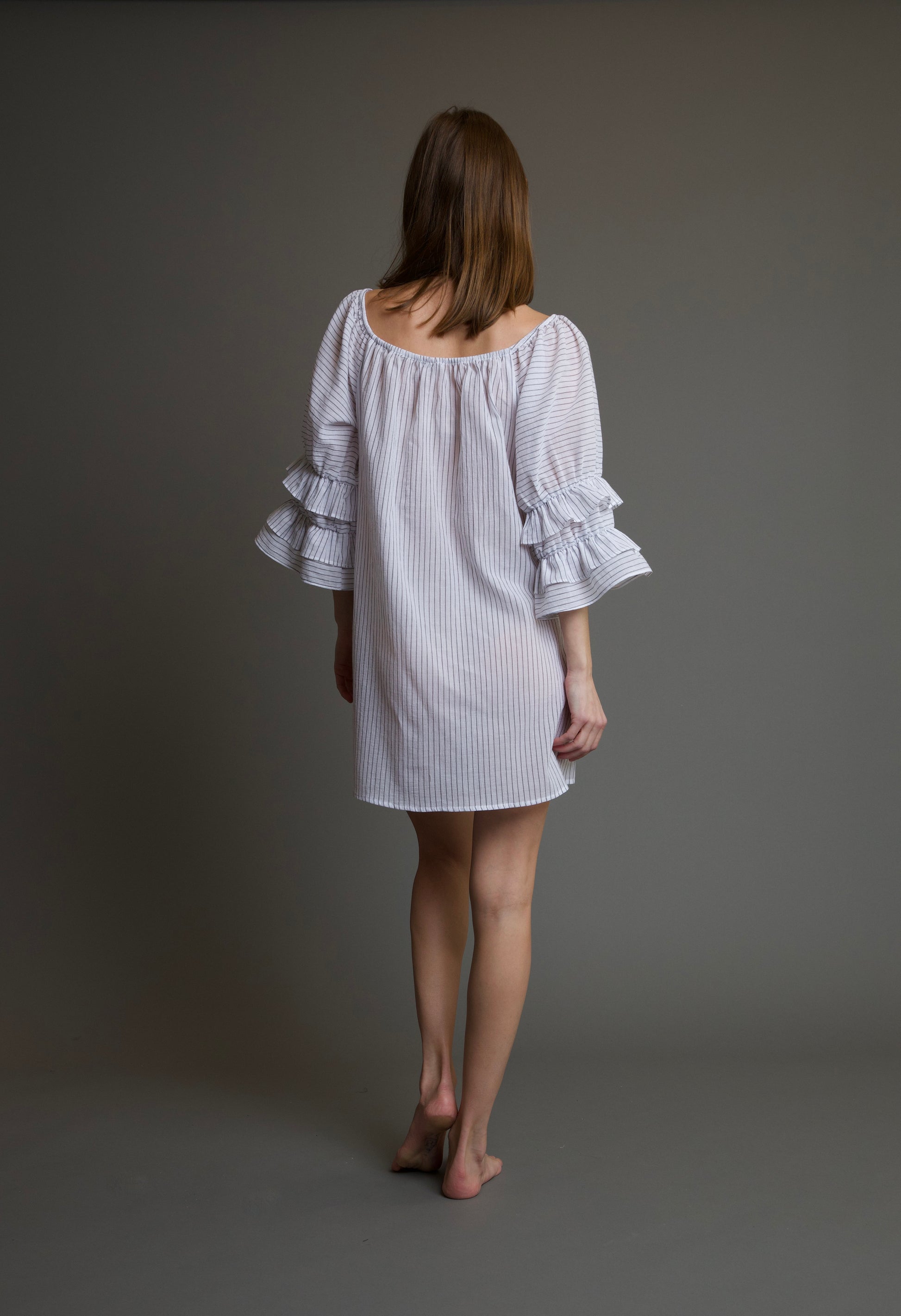 Material: Pinstripe, Woven. 100% Cotton. Cold water wash and lay flat to dry.