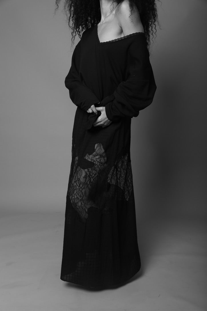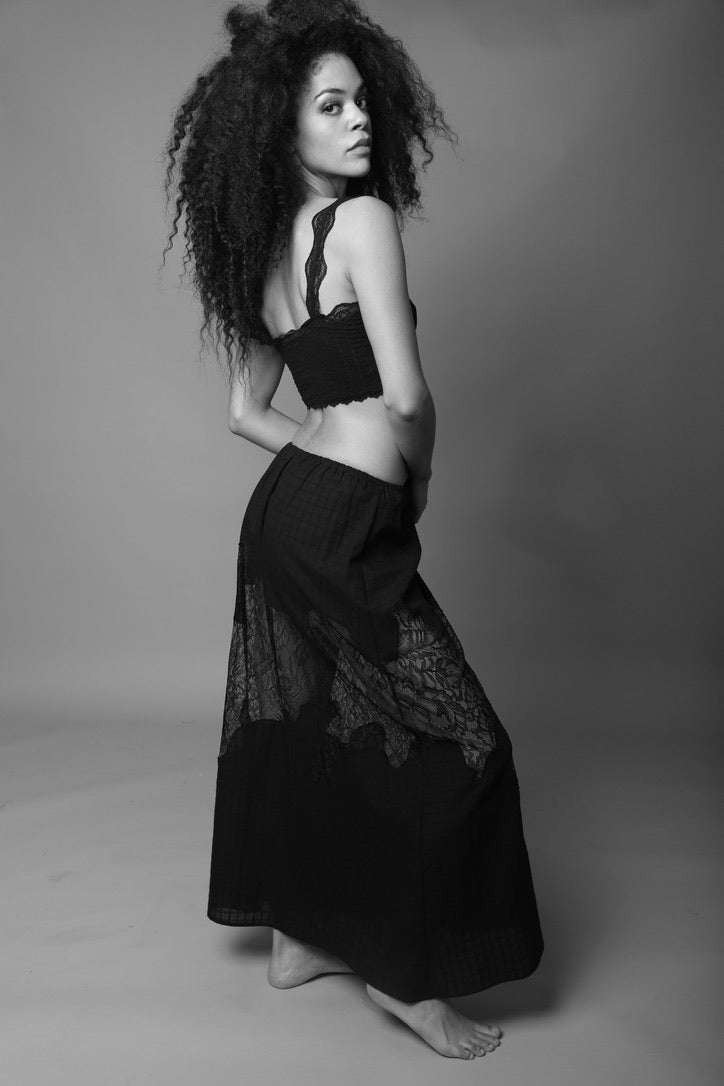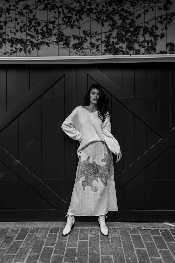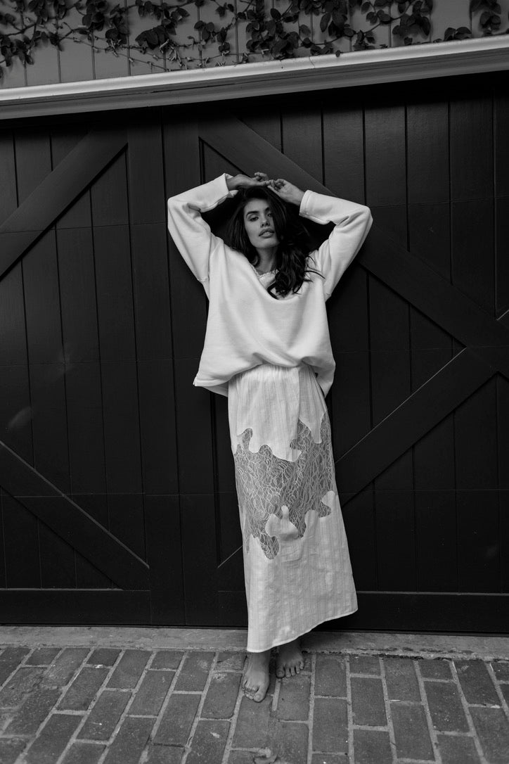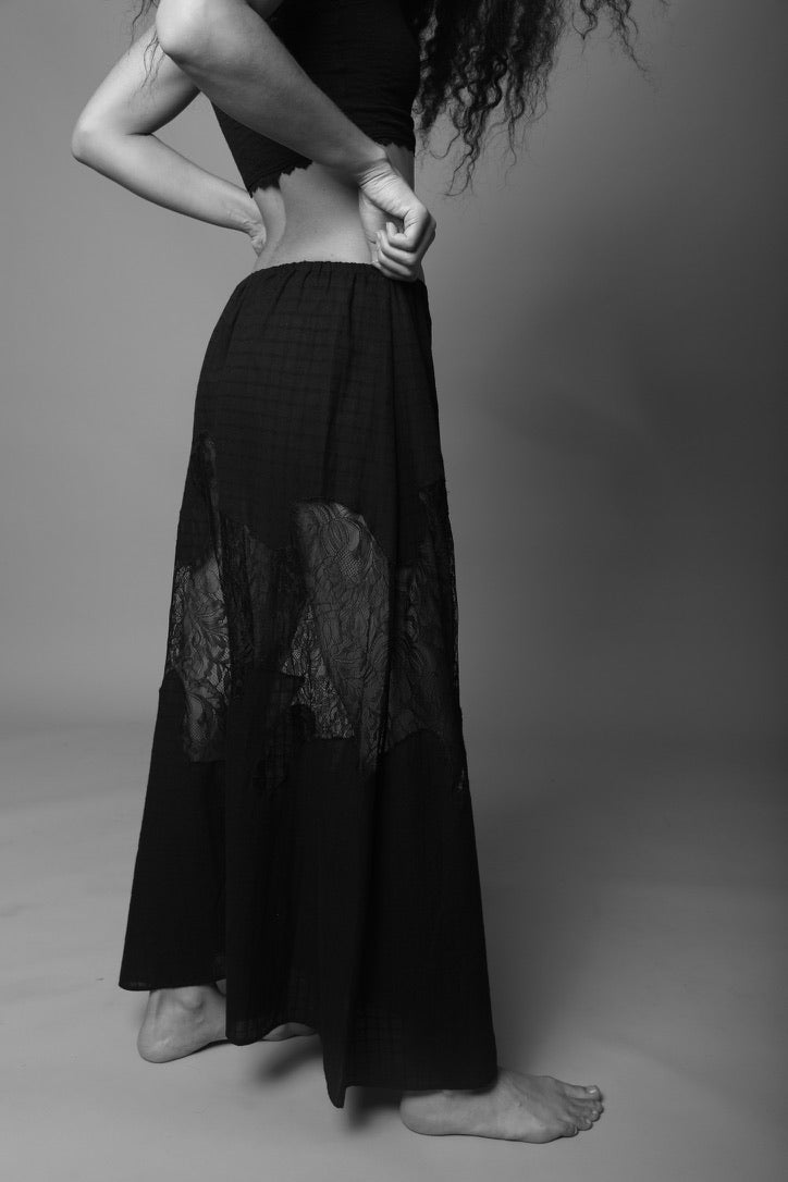 The Sabine Marseille Graphic Skirt is a stylish and comfortable addition to any wardrobe. Crafted entirely by hand from our Andine fairies. This is a loose-fitting skirt that features a lace insert approximately 9” from the waist, with variegated lace heights of approximately 10”. The skirt length is approximately 38” inches.