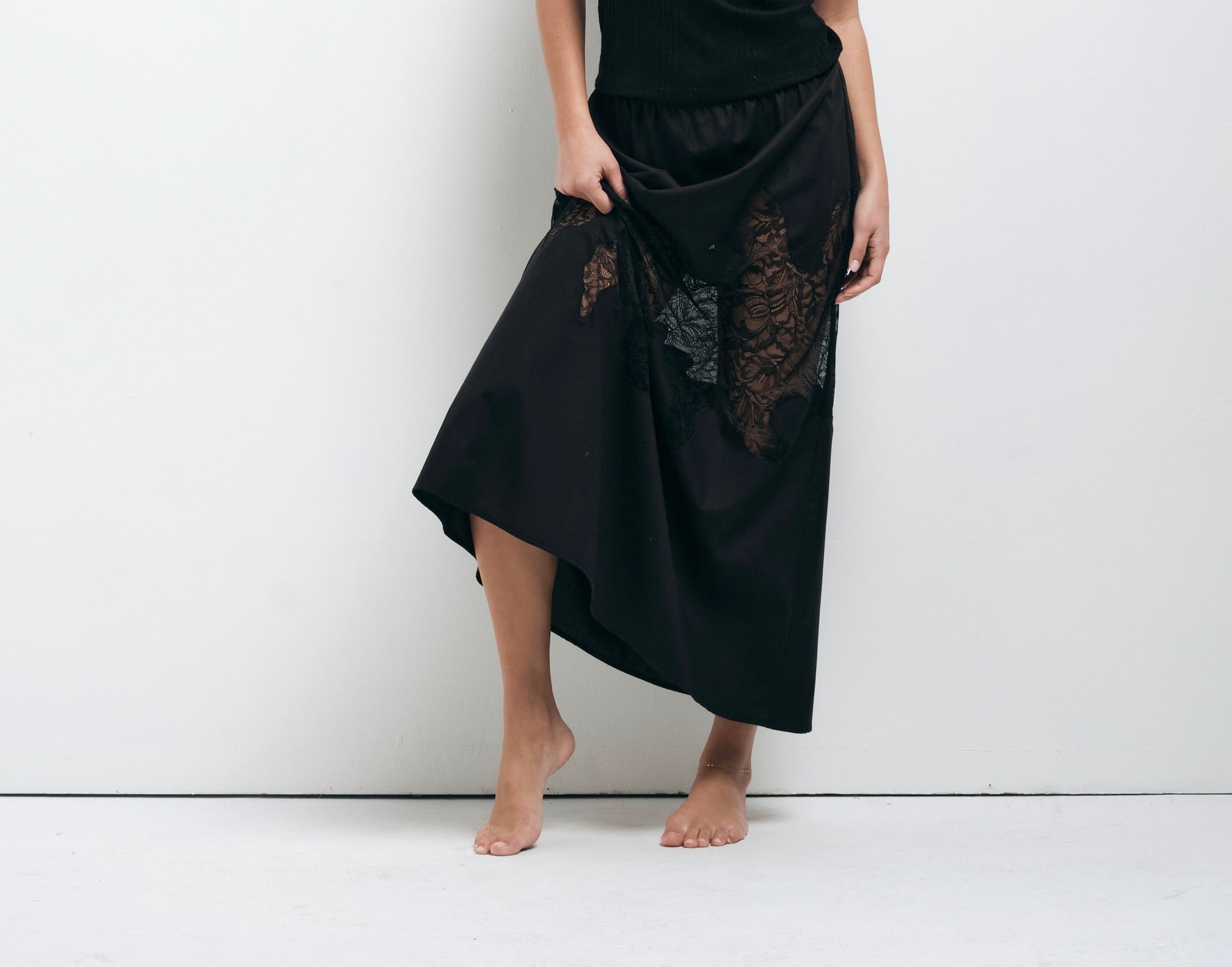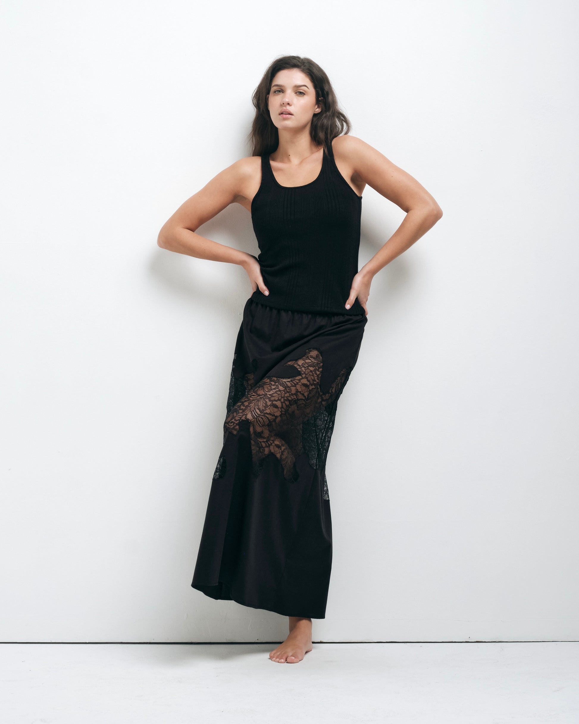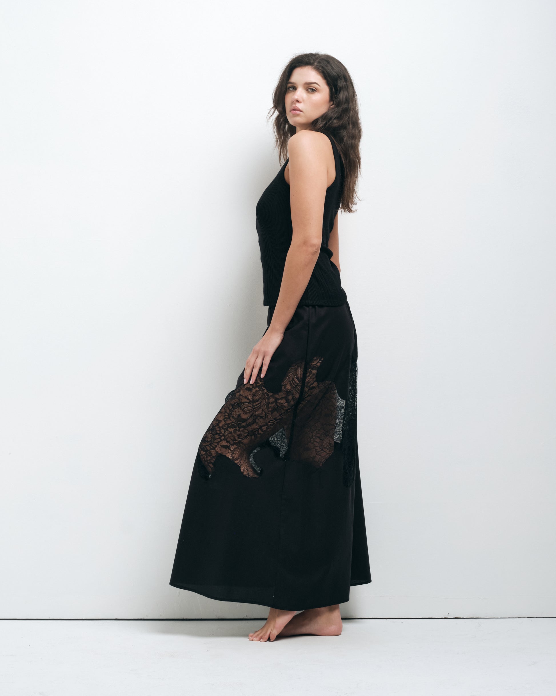 The Sabine Orvieto Graphic Skirt is a stylish and comfortable addition to any wardrobe. Crafted entirely by hand from our Andine fairies. This is a loose-fitting skirt that features a lace insert approximately 9” from the waist, with variegated lace heights of approximately 10”. The skirt length is approximately 38” inches.