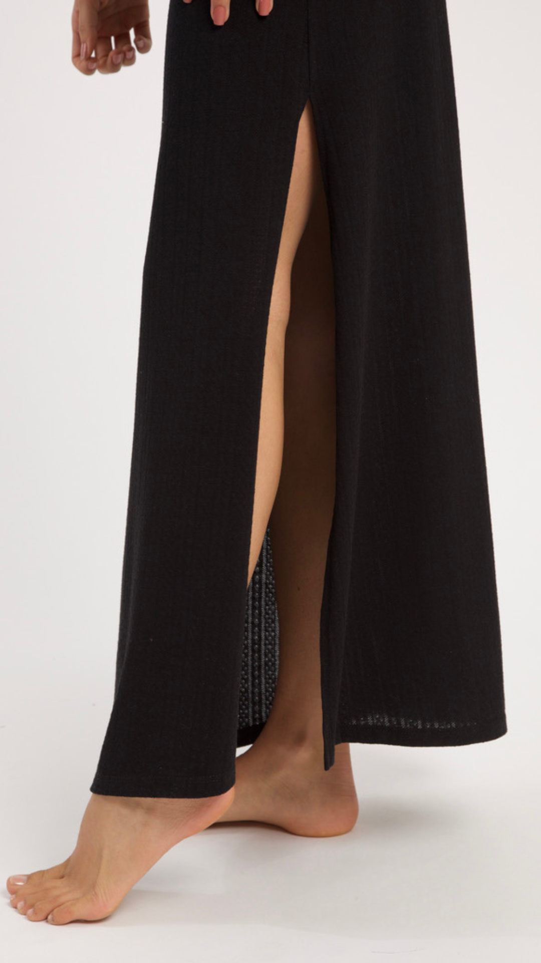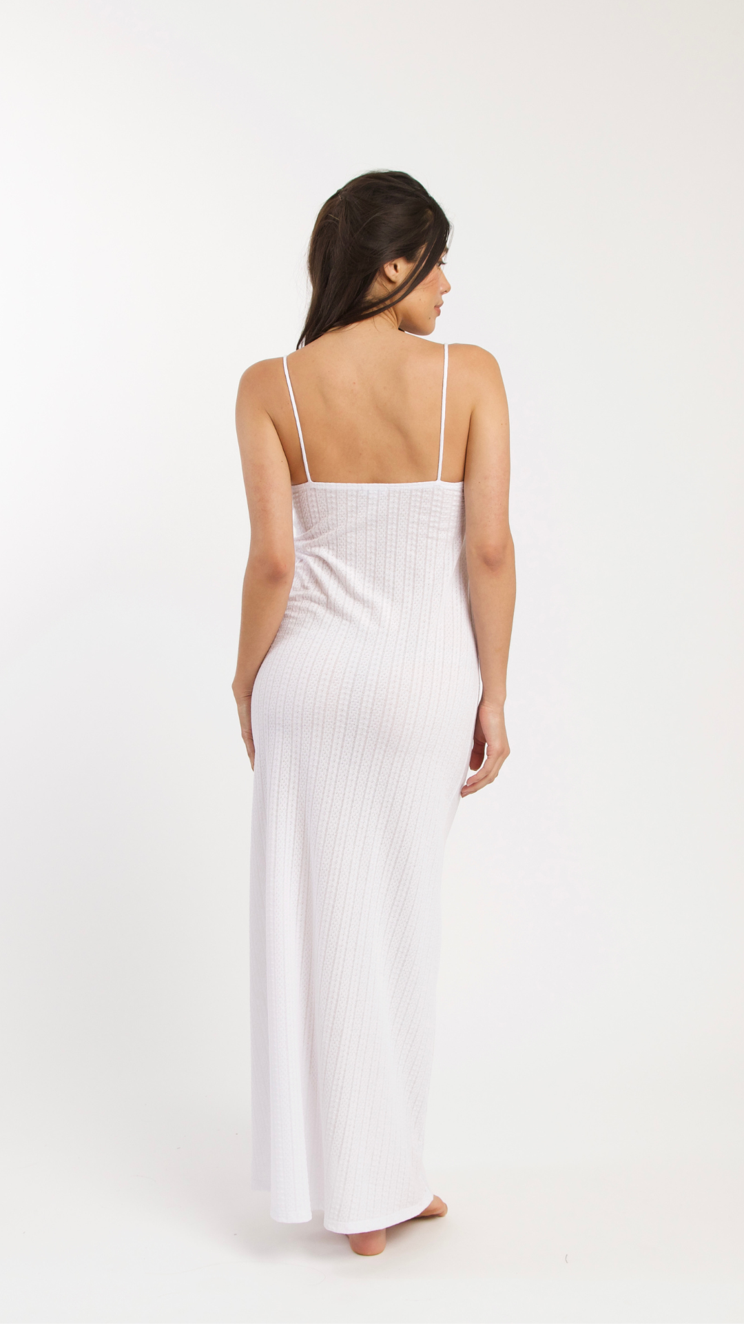 The Sophie Tuscany Long Dress is the perfect lounging dress. This lightweight and ultra comfortable long dress features a lace trim, a slit at the bottom, spaghetti straps, flattering shaped detailing along the front, and a maxi dress length cut. This dress is perfect to wear around the house, or out on the town!